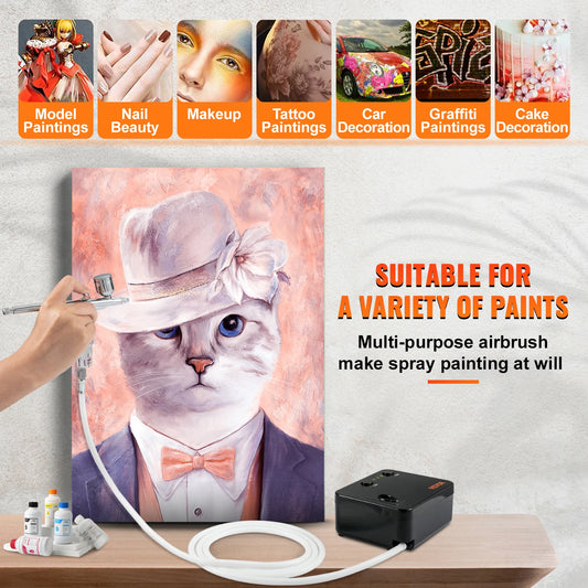 VEVOR Dual-Action Airbrush Kit with 30PSI High-Pressure Auto Start/Stop Control Compressor for Cake Painting Nail Makeup Model