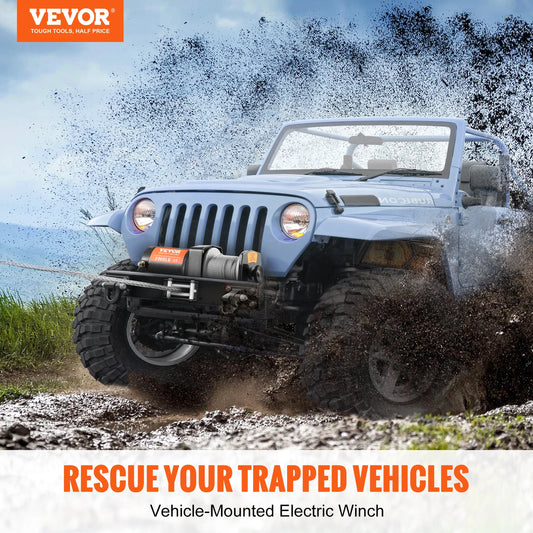 VEVOR 2000lbs Electric Winch Steel Rope Winch ATV Winch with Wired Remote & 4-Way Fairlead for Towing Jeep Off-Road SUV Truck