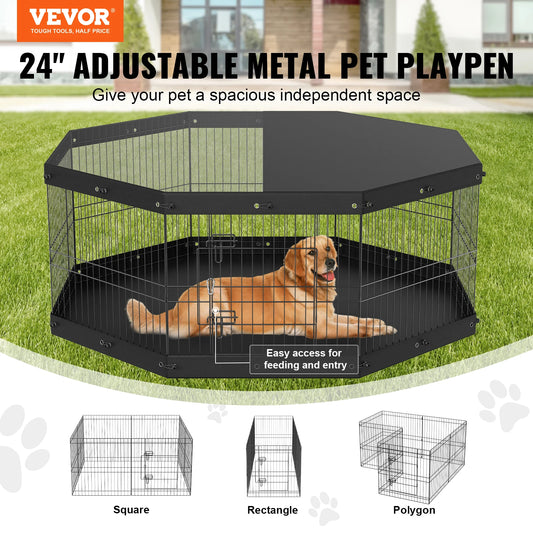 VEVOR Dog Playpen 8 Panels Foldable Metal with Top Cover and Bottom Pad 24" H Dog Pen for Small Medium Pets for Camping Yard