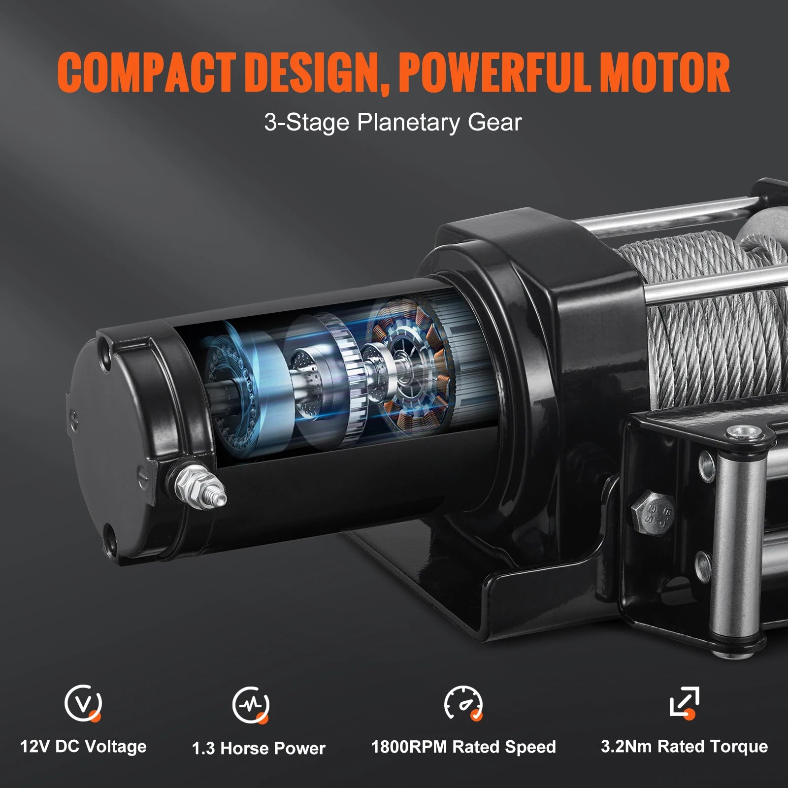 VEVOR 12V 3000lbs Electric Winch ATV Steel Rope Winch w/Wireless Handheld Remote & 4-Way Fairlead for Towing Jeep Off-Road SUV