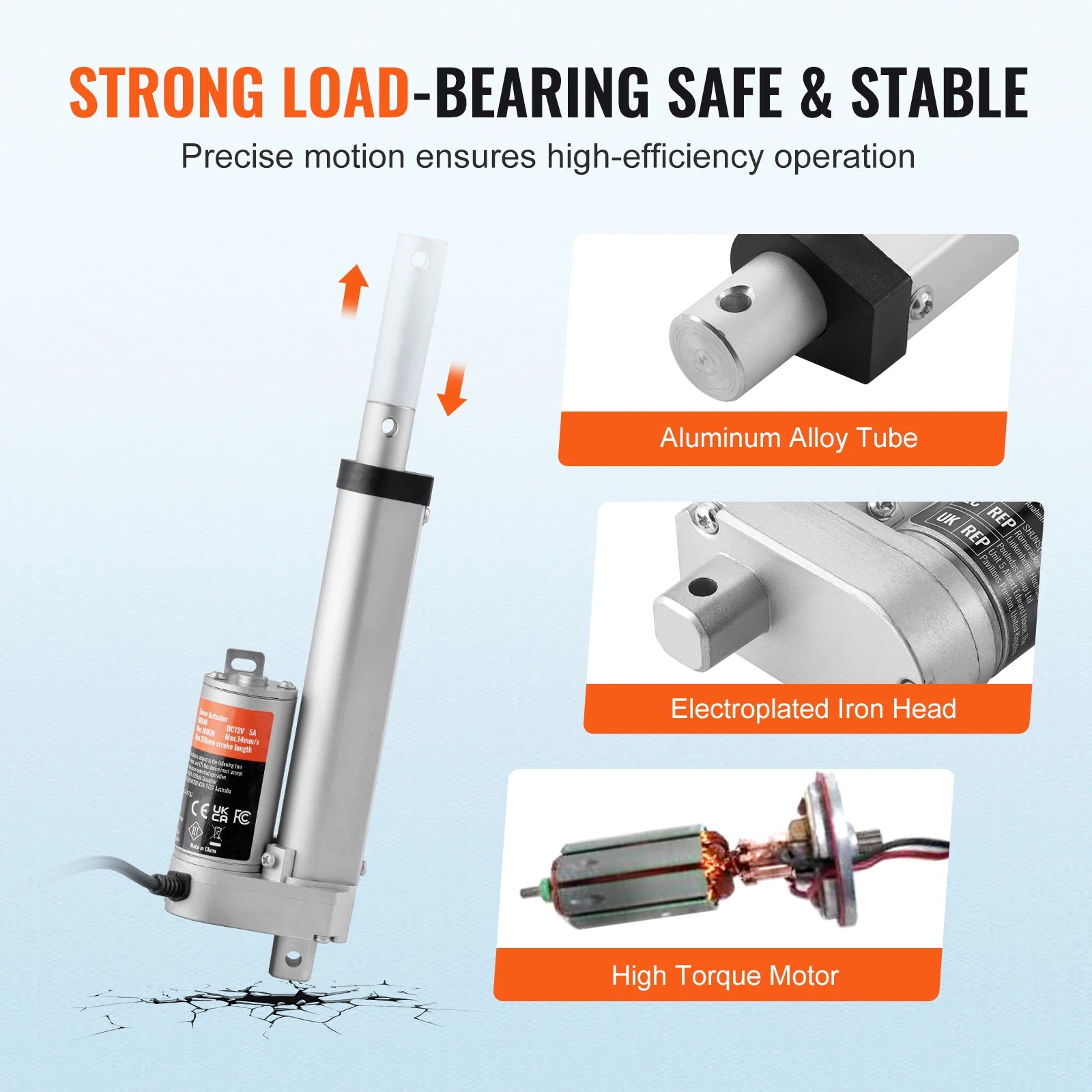 Precision Motion Control: VEVOR linear actuator offers precise position control with 0.19"/s stable speed and 330lbs high torque output. Perfect for tasks requiring exact positioning, such as robotic arms or electric beds that demand precision.
