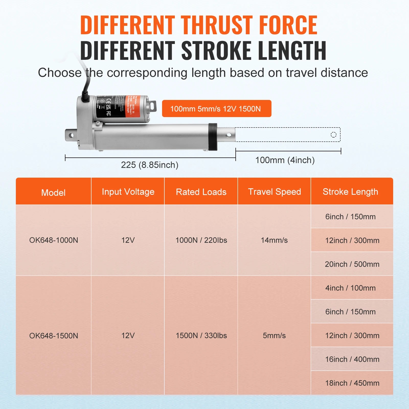 Versatile Applications: With a noise level below 60db, our linear motion actuator seamlessly fits into various applications, from furniture to automation systems, mechanical equipment, transportation, and more. Enjoy versatile functionality wherever you need it!