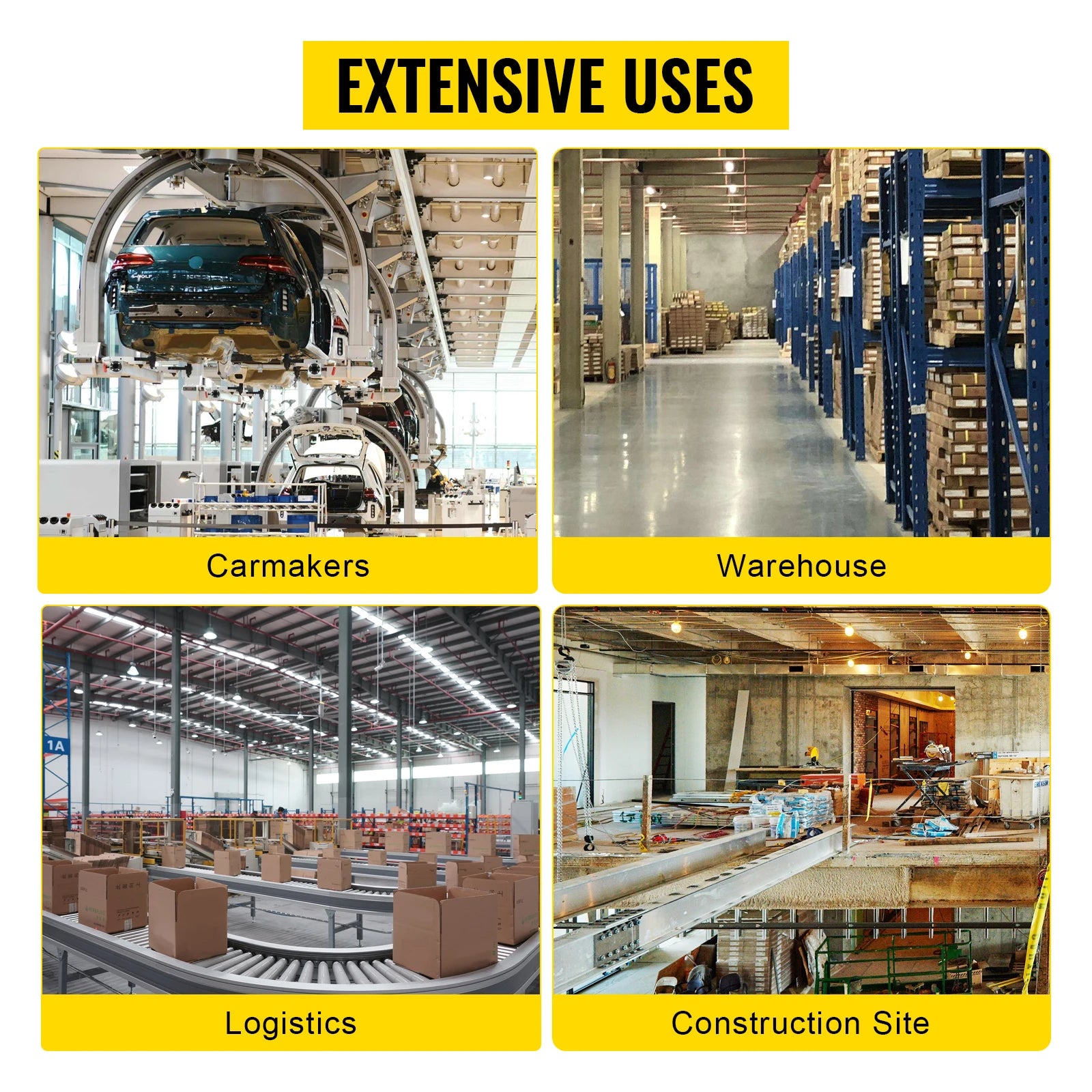 This power electric hoist is an excellent choice to lift regular or irregular shape things such as stones, trees, mowers, engines, and so on. As a result, it is widely used in carmakers, construction sites, logistics, warehouses, etc.