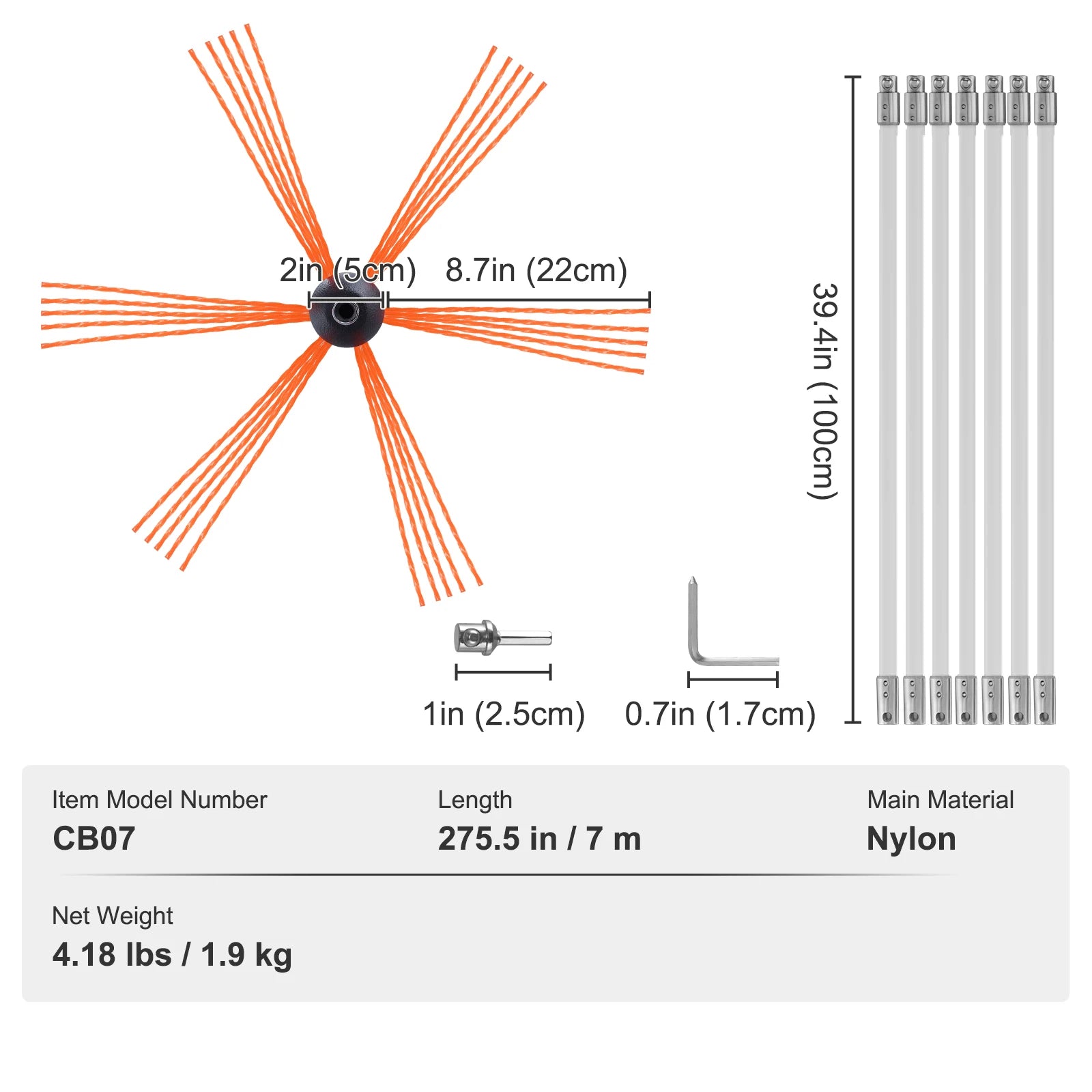 VEVOR 23/26/30/33/39ft Chimney Sweep Kit w/ Reinforced Nylon Flexible Rods Ergonomic Chimney Cleaning Brush 360-Degree Brush