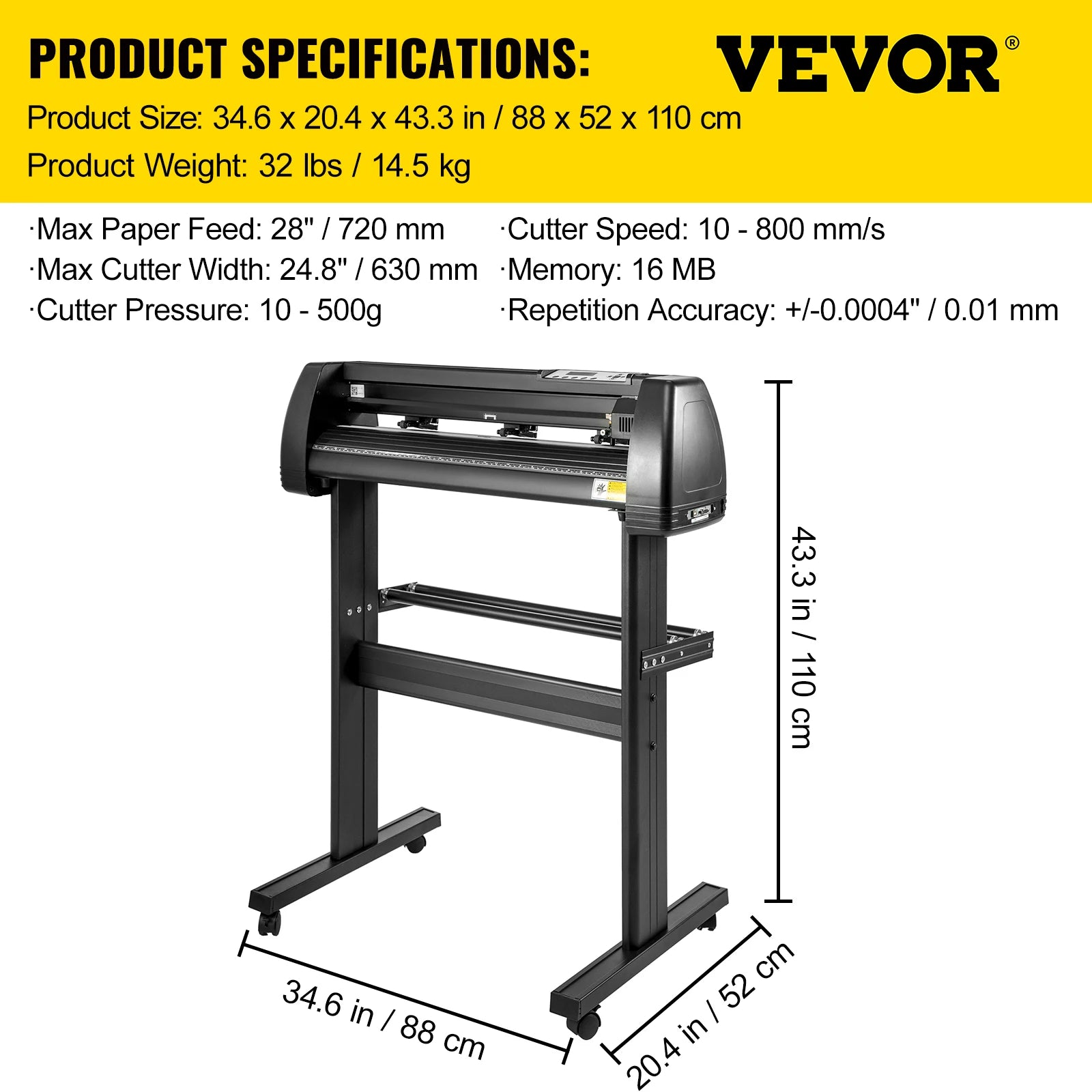 VEVOR 28 Inch Vinyl Cutter Machine Floor Stand Vinyl Plotter Adjustable Force Speed Digital Control USB Port For Sign Making