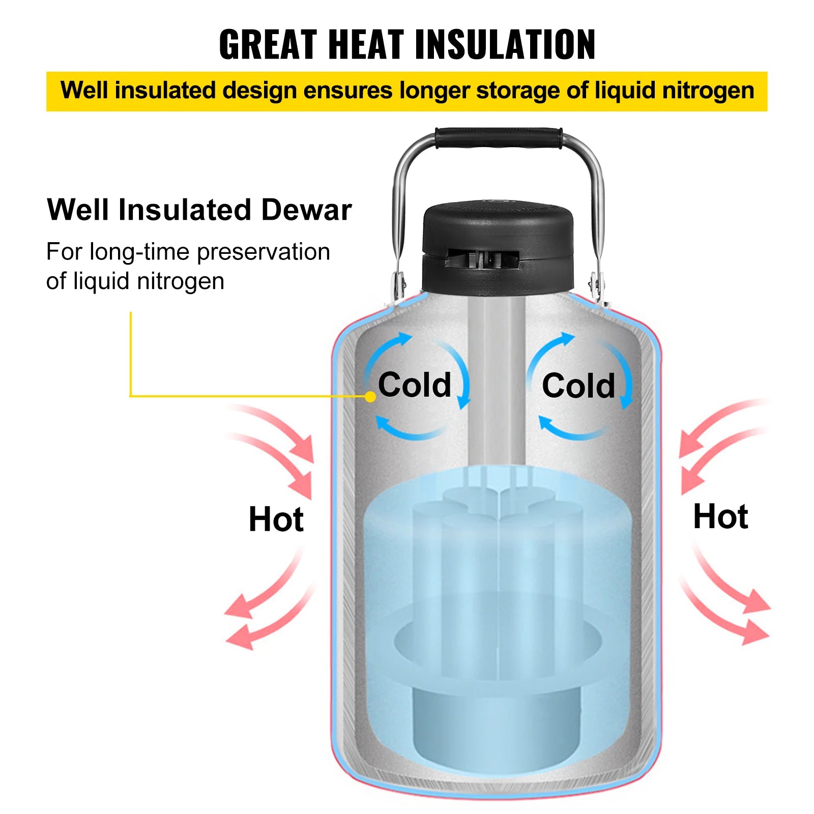 The silicone vacuum nozzle seals the vacuum environment, making this liquid nitrogen tank an ideal low-temperature storage device.
