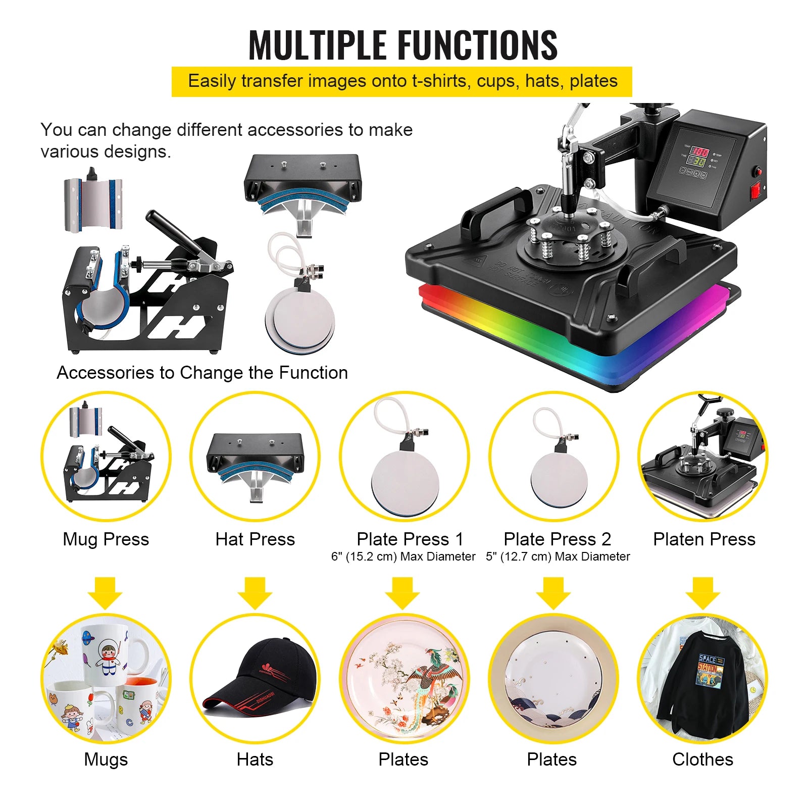 VEVOR 5 6 8 in 1 Heat Press Machine T shirt Heat Transfer Printer Muntifunctional Sublimation For Mug/Latte Mug/Hat/Plate/Bottle