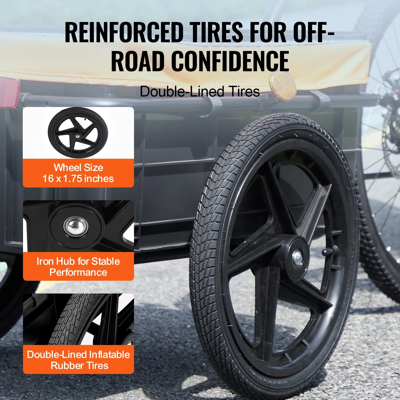 VEVOR 88 lbs Bike Cargo Trailer Bicycle Wagon Cart Foldable Storage with 16" Wheels & Safe Reflectors Fits 24"-28" Bike Wheels