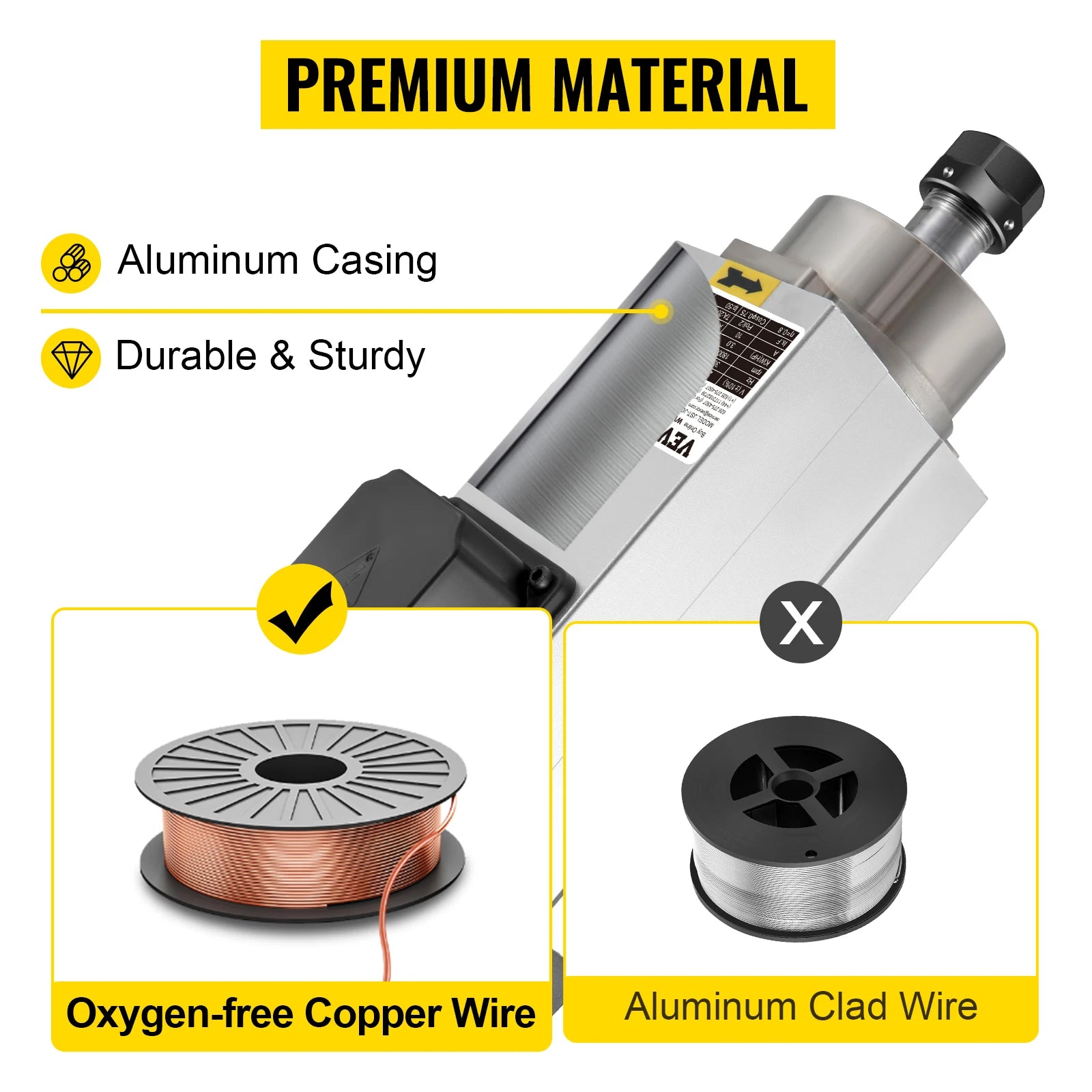 The use of acid-proof materials makes the CNC router spindle motor more durable & sturdy. The metal casing greatly improves cooling efficiency & faster dissipates heat.