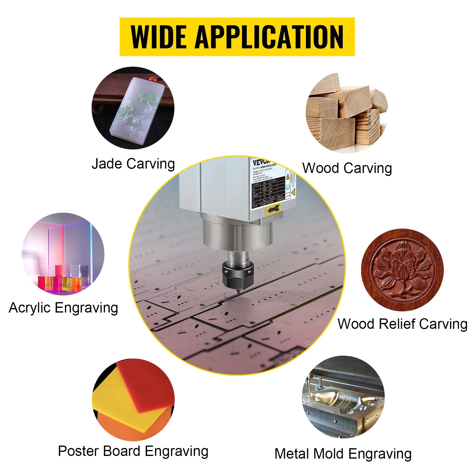 【ADVANCED BALANCE TECHNOLOGY】- Dynamic balance technology can effectively reduce the noise in the process of use. The efficiency & service life of the CNC router spindle can be significantly improved. The nut using manganese steel is hardened with high precision, not easy to break the knife.