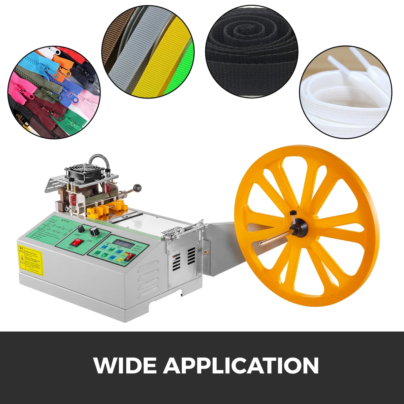 VEVOR Automatic Computer Cloth Tape Cutting Machine Hot and Cold Knife Magic Sticker Tube Zipper Heat Shrink Elastic Cutter Tool