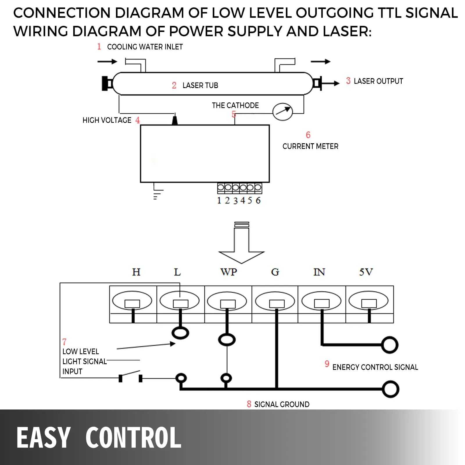 Simple Port Control: Suitable for high and low-level signals. Use the TTL level to control the laser start and stop. At the same time, a protection switch is added to detect whether there is water or ventilation outside.