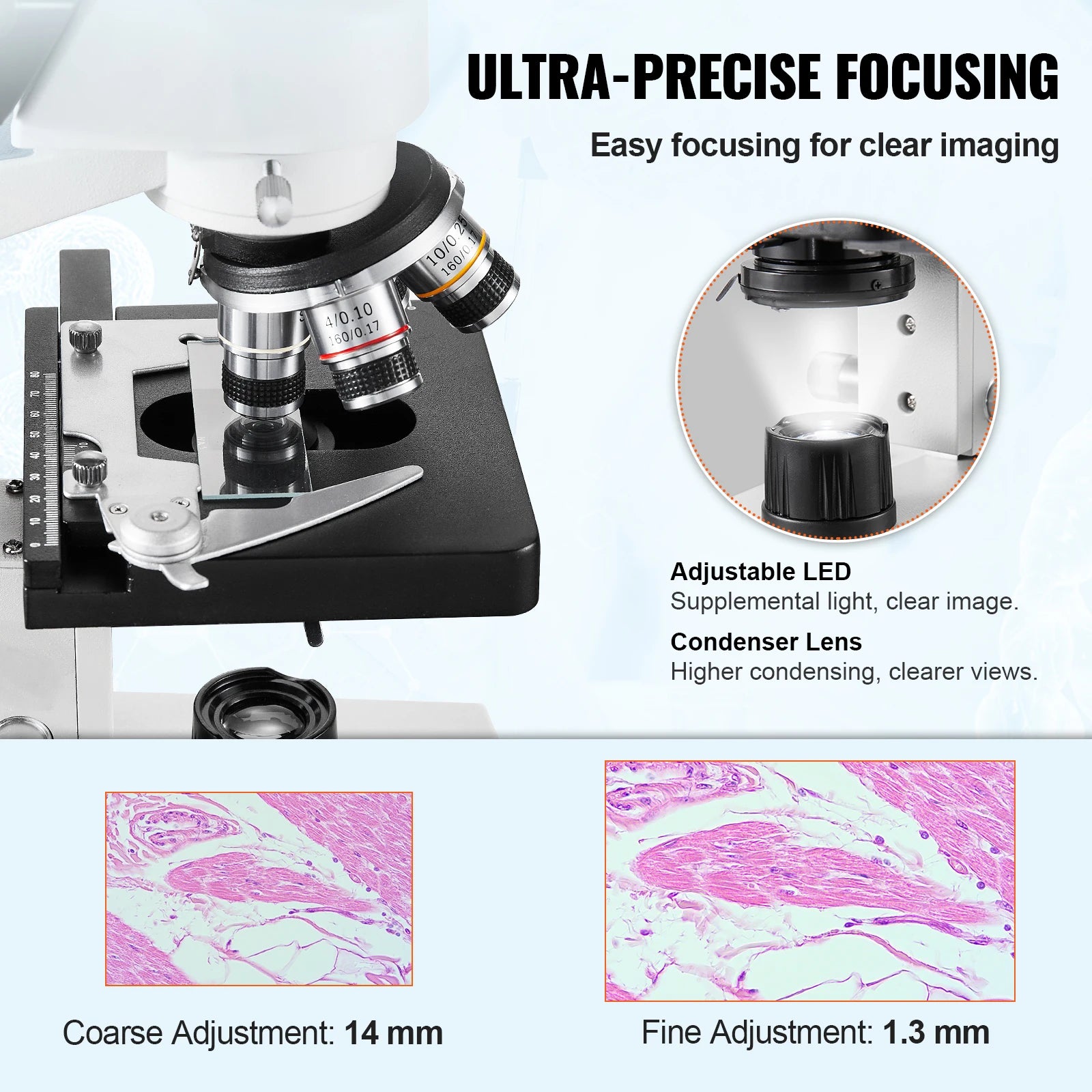 VEVOR Compound Trinocular Microscope 40X-2500/40X-5000X Magnification Lab Microscope with LED Illumination & External Interface