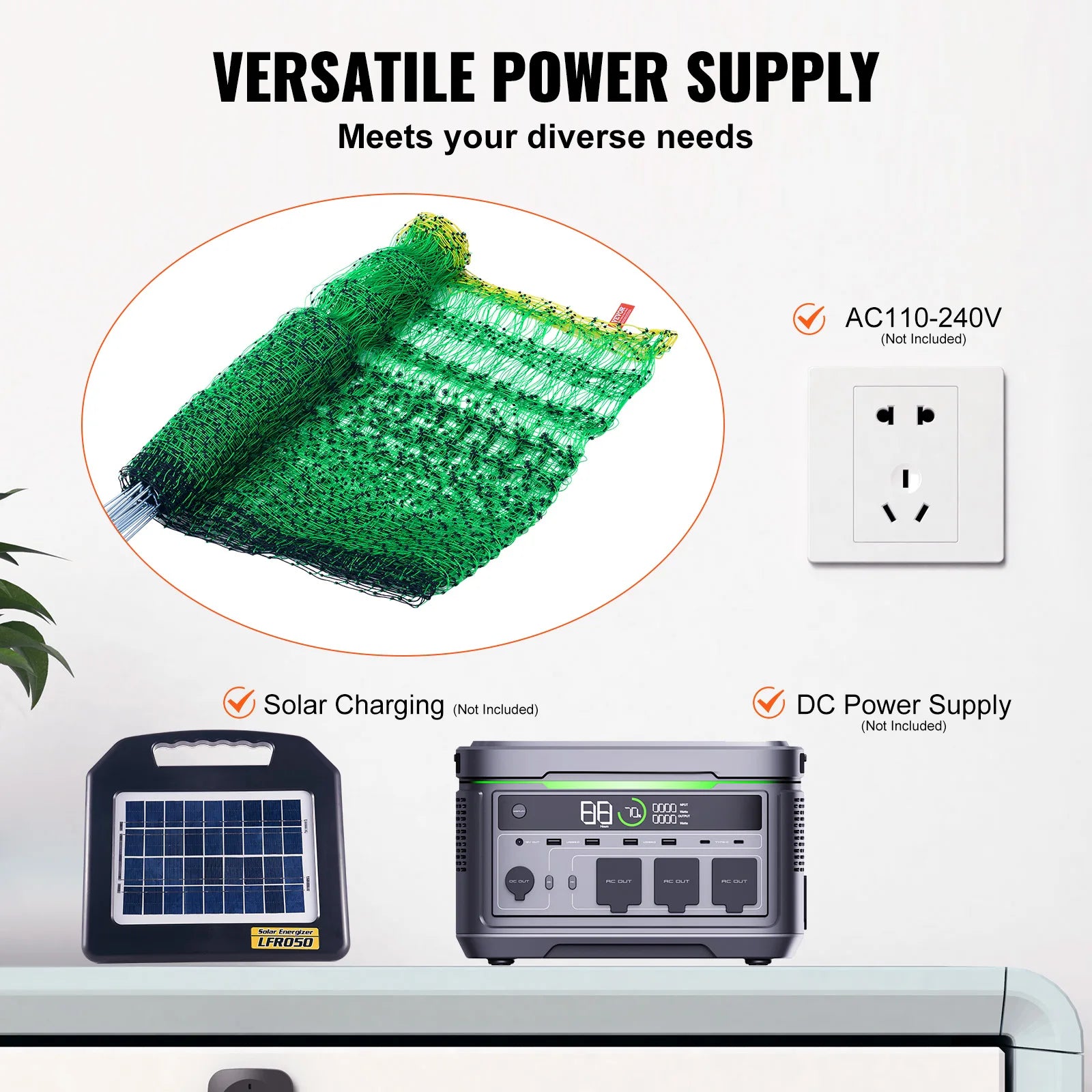 Multiple Power Supply Options: This electric fence supports external power supply of AC110-240V, as well as solar panels and DC power supply (not included). These multiple power supply options reduce energy consumption and provide a green solution for your farm.