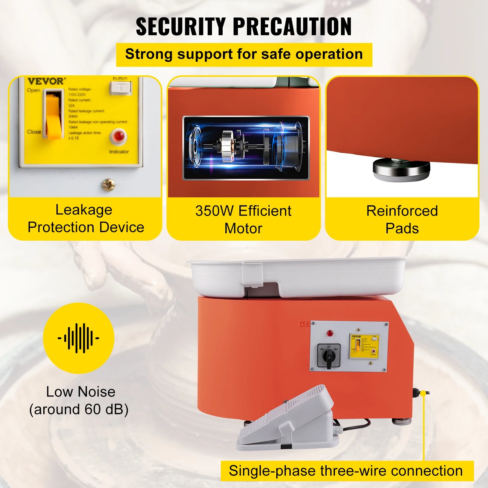 VEVOR Electric Pottery Wheel Machine 28cm 350W Manual Handle & Foot Pedal for School Ceramic Clay Working Forming DIY Art Craft