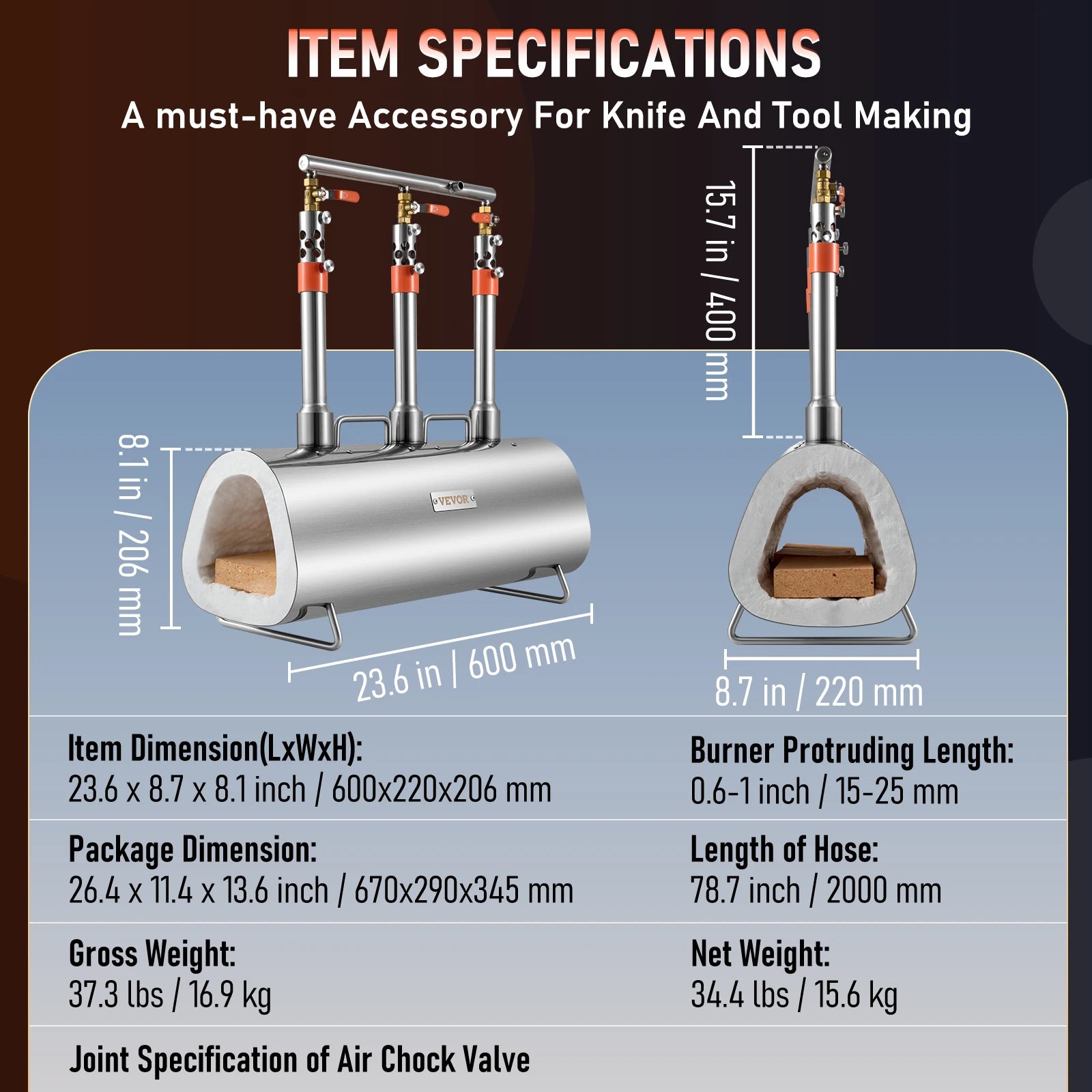 A forge burner with a beautiful orange color gives a more attractive outlook. With a better air inlet, this gas forge has more oxygen to enhance its burning capabilities. The superior structure provides a better effect and durability. It also is safe to use the product for a long time.