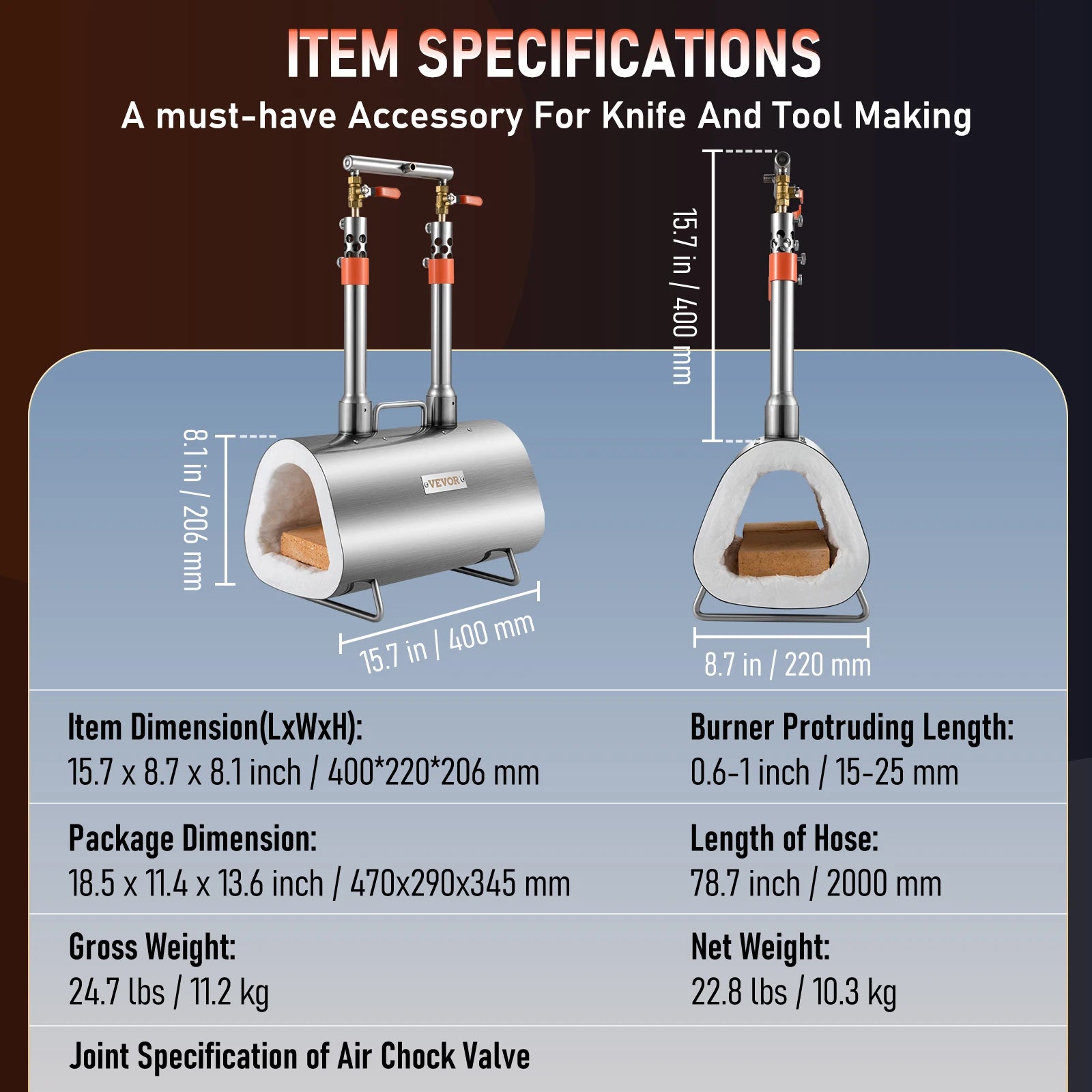 Integrated Construction: The burners and accessories of the propane forge are made of high-quality polished stainless steel, making it more durable and long-lasting. The blacksmithing gas forge is weldless. It's a good choice as a gift!