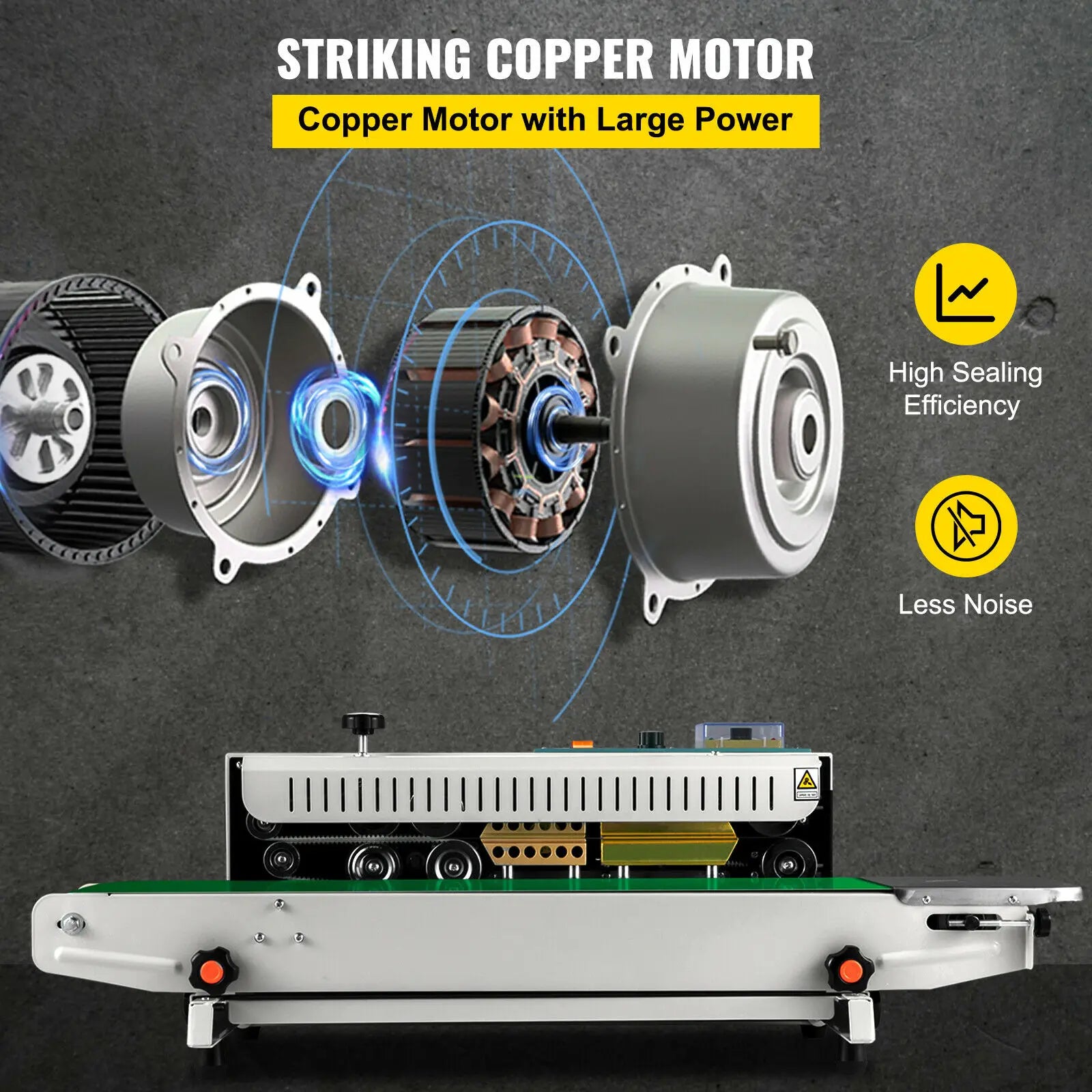 【DURABLE MATERIAL】- This continuous sealer has all-metal construction with durable electrostatic paint treatment. The heating block and cooling block are made of pure copper. This premium material against wear is relatively solid.