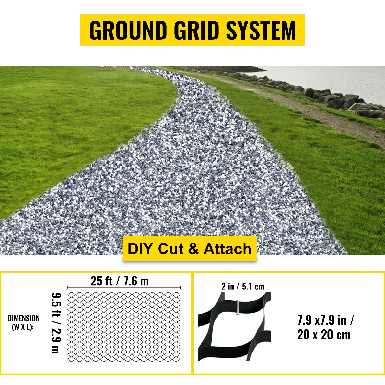 VEVOR Ground Grid Paver Geocell Grid 2 in/3 in Thick Geo Grid Black 27 x 4ft /25 x 9.5ft HDPE Material for Gravel Home & Garden