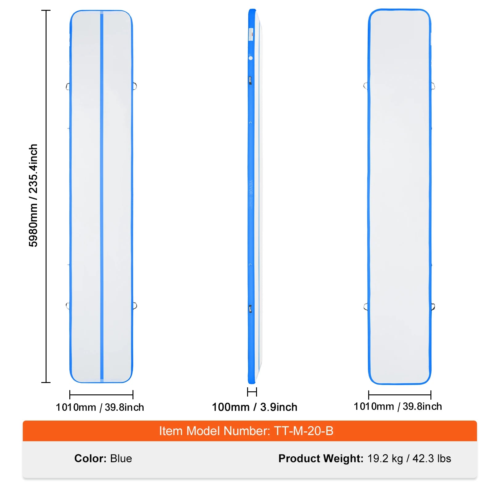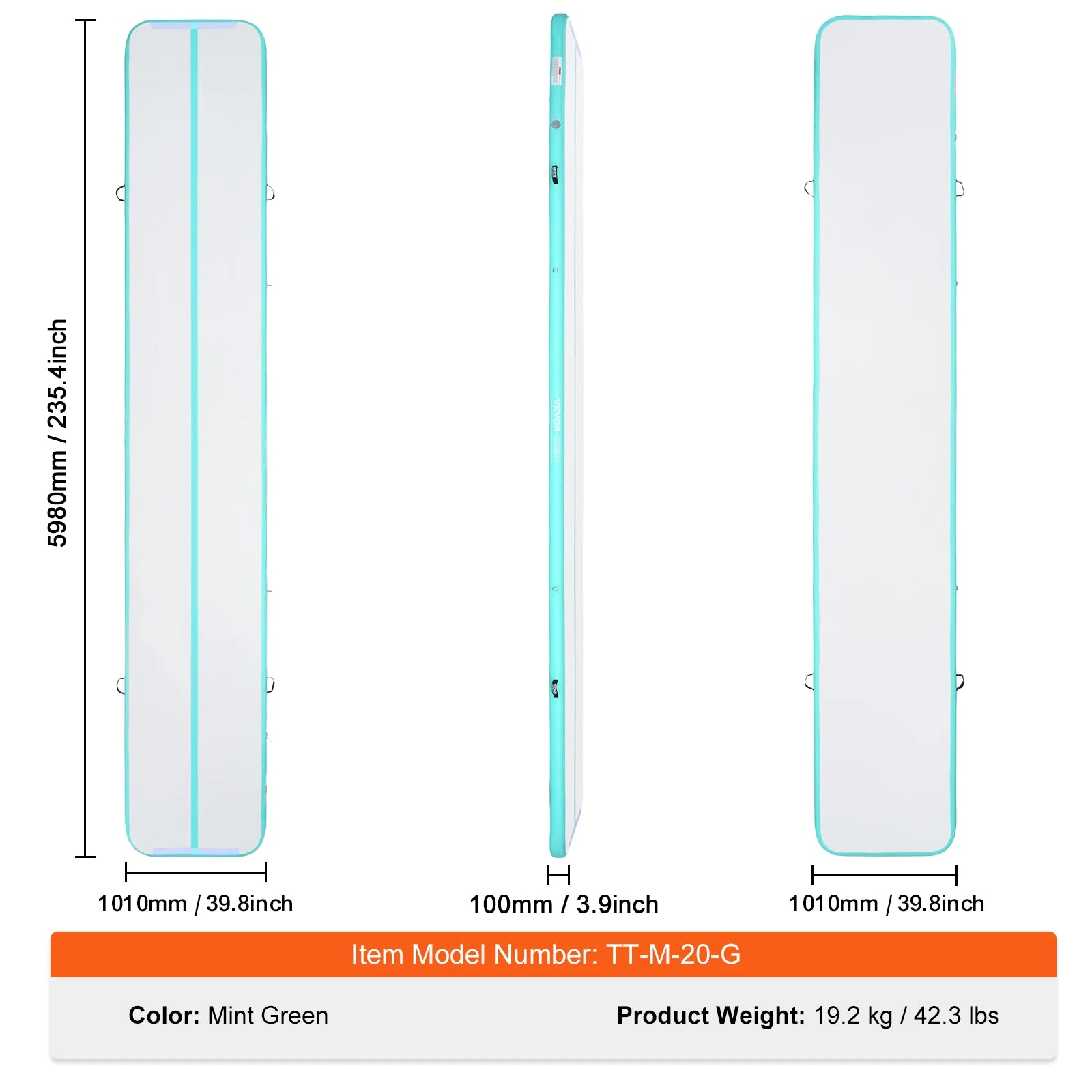 Variety of Sizes and Colors: Offering air tumbling mats in lengths of 10 ft, 13 ft, 16 ft, and 20 ft to suit your specific needs. Available in multiple colors to add vibrancy to your training and lifestyle. The mat is versatile, suitable for tumbling, gymnastics, yoga, artistic activities, and can also be used on beaches, swimming pools, backyards, or lawns – just avoid sharp objects.