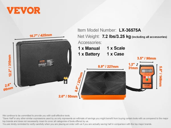 Portable Design: Housed in a waterproof and dustproof plastic case for safe transport and storage. The case's buckle design prevents accidental openings, ensuring the refrigerant scale and remote control are securely stored. Ideal for on-the-go professionals requiring reliable measurement tools.