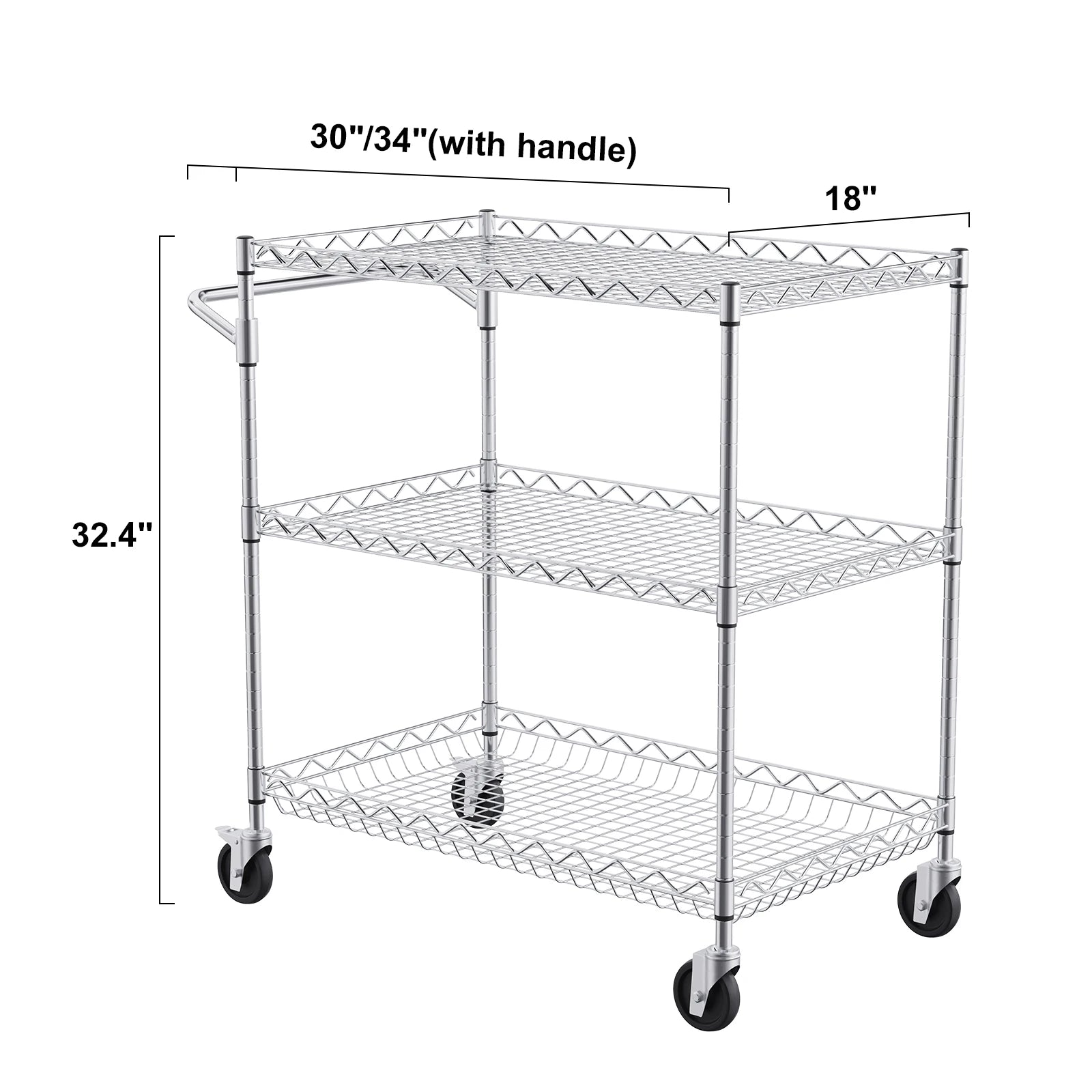 Load Up and Roll: Are you ready to get more out of your kitchen space? VEVOR's 3-tier utility cart with NSF certification is made of industrial-strength steel, ensuring durability and resistance to deformation. It can carry up to 661 lbs / 300 kg of heavy objects, perfect for storing and transporting large kitchen appliances, heavy machinery, etc. Time to load up and roll!