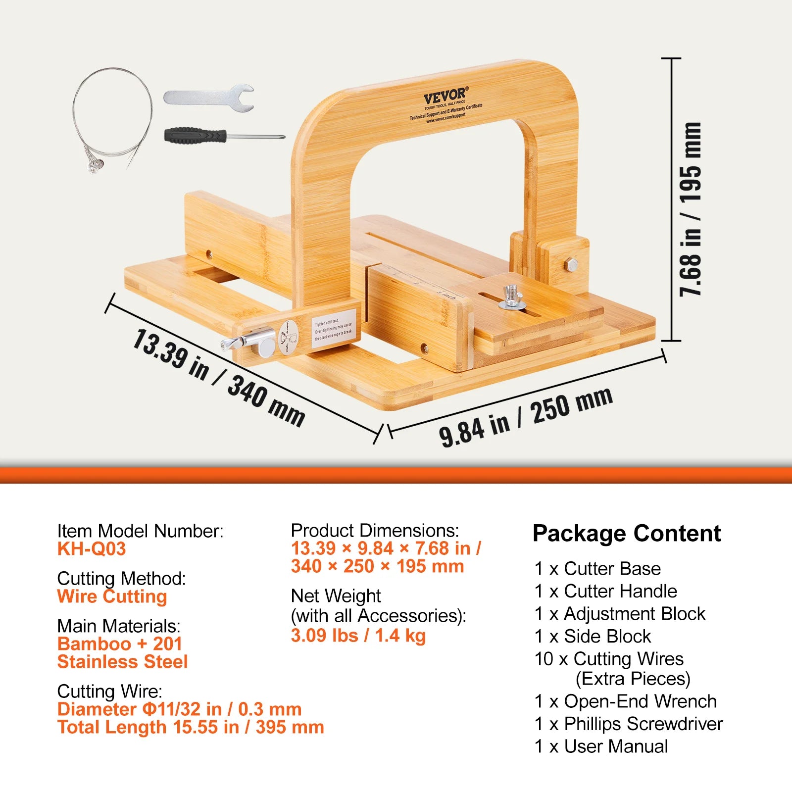VEVOR Soap Cutter 0-2 inch Adjustable Thickness Bamboo Soap Slicer With Adjustable Stainless Steel Wire Handmade Soap Cutter