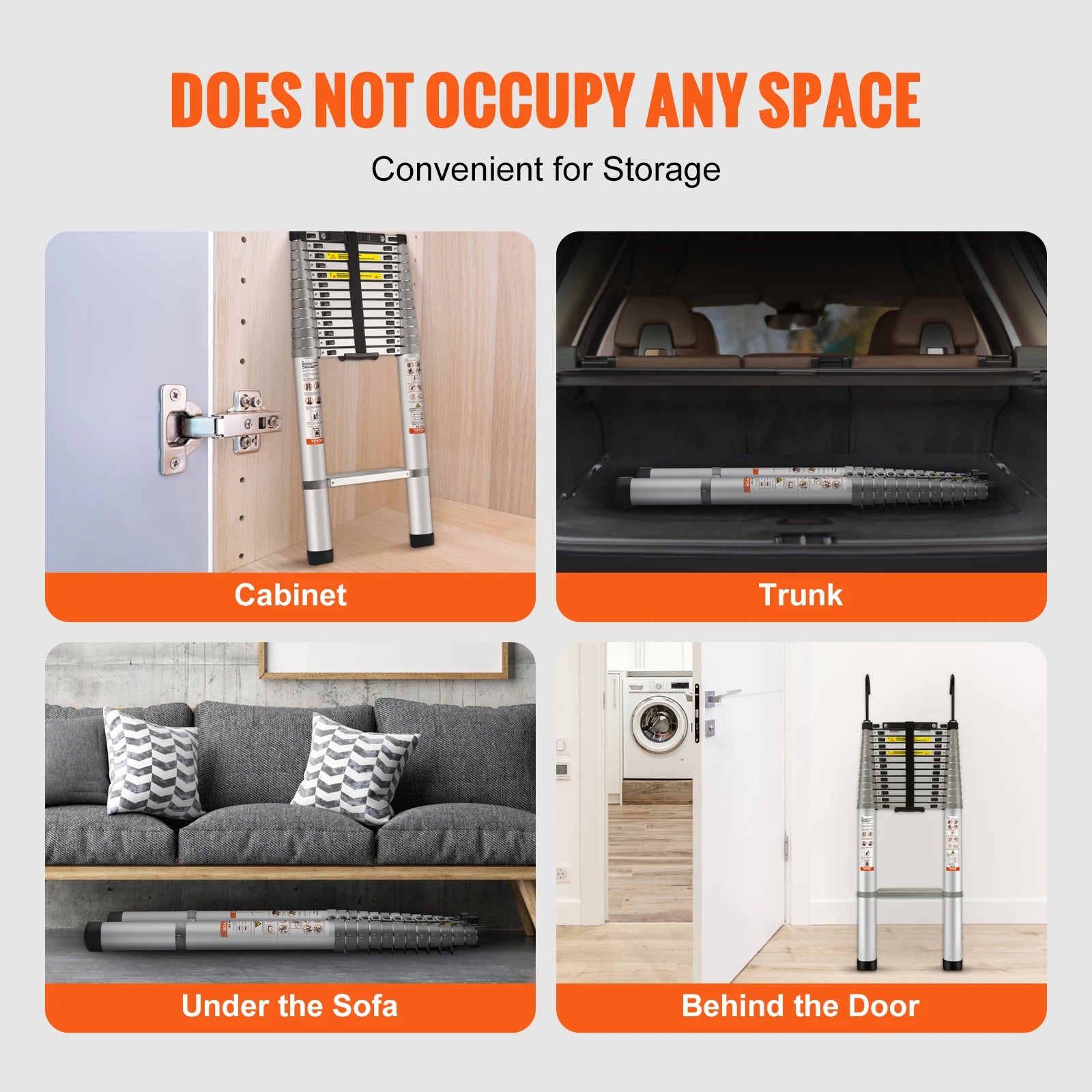 Convenient Storage: The foldable telescopic ladder is lightweight and compact, making it easy for female users to carry. You can place it almost anywhere, including under the sofa, behind doors, or in the car trunk. It is more portable and space-saving than traditional ladders.