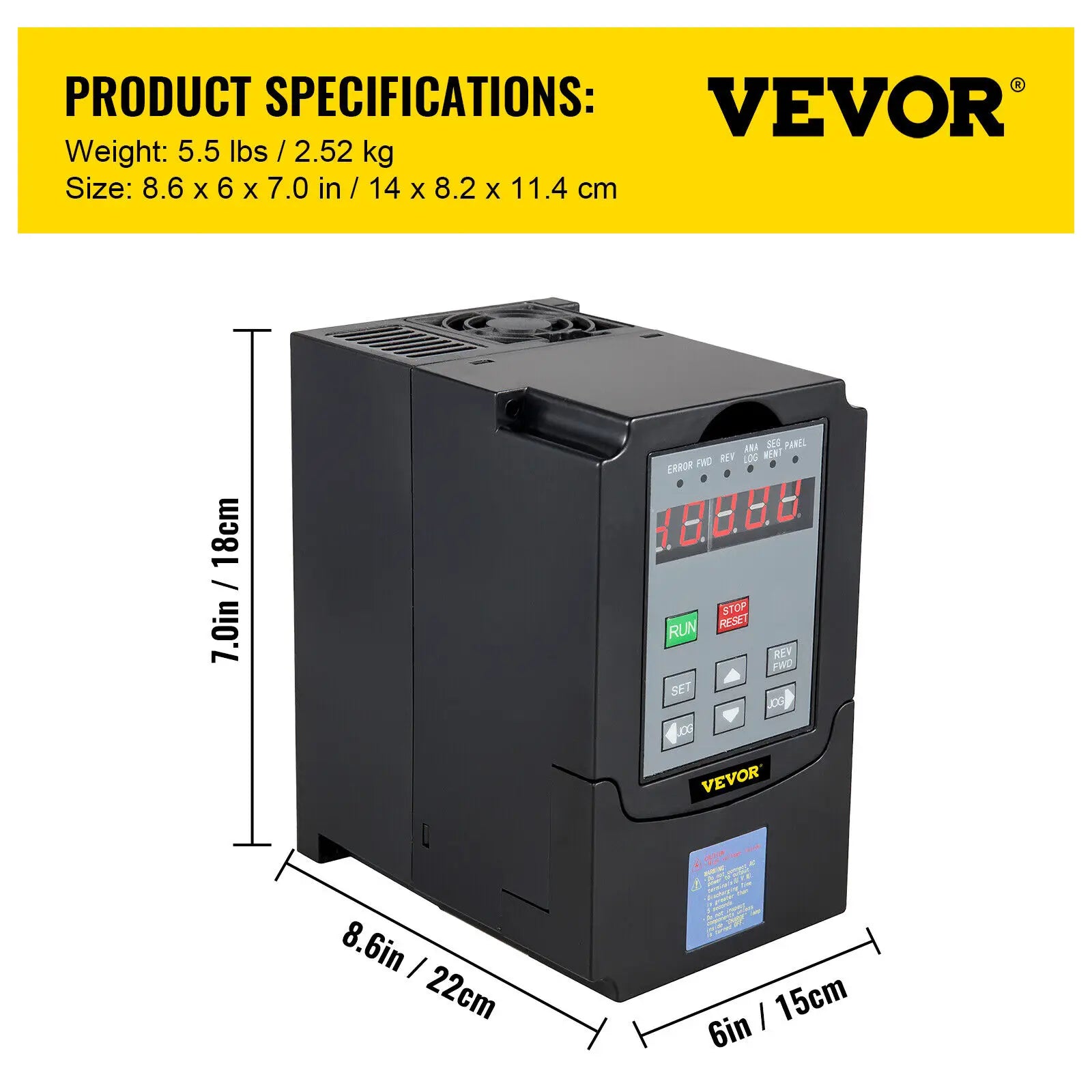 VEVOR VFD Inverter Variable Frequency Drive Converter 1.5/2.2/3.0/4.0/5.5/7.5KW AC 220V 3P Output Speed Controller for Motor CNC